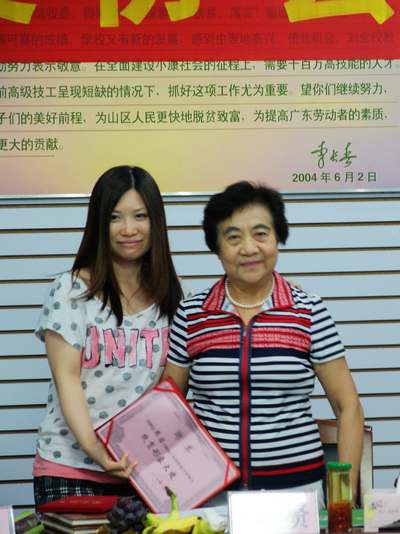 协会主席吴桂贤向广东世纪艺人影视制作有限公司总裁陈珍爱女士(左一)颁发荣誉证书(右图)