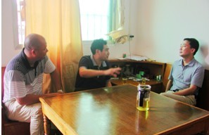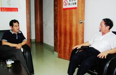 钟秘书长与乐昌市扶贫开发“双到”办公室副主任吴新洋(右一)座谈。