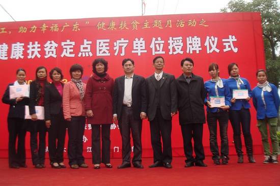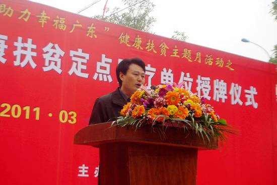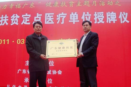 省扶贫开发协会秘书长钟韶彬出席授牌仪式并作重要讲话,省扶贫开发协会健康扶贫办公室副主任、广东省卫生厅原医政处处长翟祖唐宣读广东健康扶贫定点医疗单位批复文件。