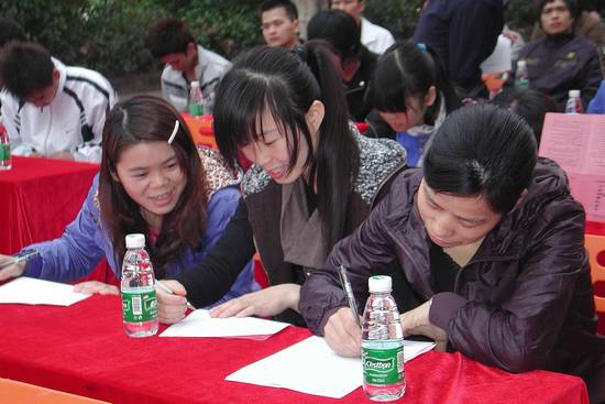 ▲外来女工代表与出席仪式的领导嘉宾合影留念