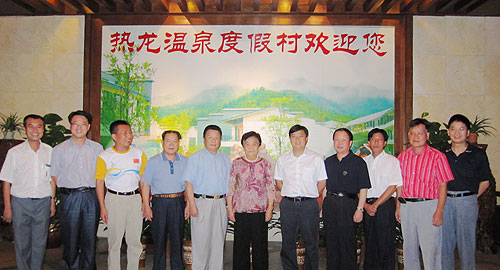 吴桂贤首先听取了和平县的整体脱贫规划及一线扶贫情况,随后在当地县委书记陪同下前往热水镇革命老区考察热龙温泉度假村项目。该项目是广东省扶贫开发协会副理事长单位广东金穗集团投资山区生态旅游扶贫项目,打造和平温泉小镇的一期工程,已于06年底正式营业。目前该度假村每年接待游客约10万人次,热水河漂流每年接待游客达3万人次,年营业收入约2000多万元,上缴税收100多万元(占热水镇税收的80%左右),同时解决了当地约300农户的就业问题。