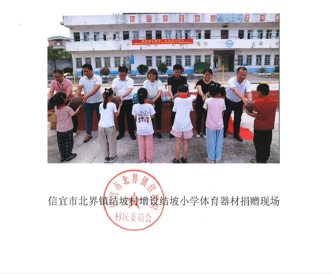 2025年,中国邮政集团有限公司广东省分公司帮扶茂名市信宜市北界镇结坡村实施教育帮扶公益项目,通过广东省乡村发展协会向结坡小学捐赠价值22450元体育器材。目前,该项目已完成全部项目实施目标任务,顺利通过结题验收。把好立项、执行、使用、验收四关成为该慈善项目最大亮点与突出特点。