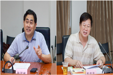 钟韶彬副理事长在座谈会上汇报工作(图左)黎建波副局长在座谈会上讲话(图右)