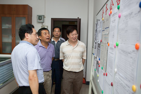 黎建波副局长(右一)在钟韶彬副理事长(左一)陪同下参观办公室