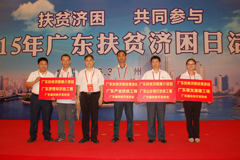 当天的活动,还现场接收爱心企业和爱心人士捐赠。共计接收捐赠18.5亿元;其中省级接收认捐30万元以上单位和个人共有58个,最大额度的捐赠仍是广东碧桂园控股有限公司,认捐1亿元。活动同时表彰了2014年广东扶贫济困红棉杯和广东扶贫济困优秀团队(项目) ,我会今年再获三桂冠,“广东梦想知识包”、“广东银发温暖工程”和“广东产业扶贫工程”等三个项目被评为“广东扶贫济困优秀项目”,连同2014年、2013年评定的“广东扶贫济困优秀项目”(分别是“山乡亮灯扶贫工程”和“广东健康扶贫工程”),协会去年获得的“广东扶贫济困优秀团队”认定,广东省扶贫开发协会至此已成为广东扶贫济困优秀团队和优秀项目大满贯获得者。