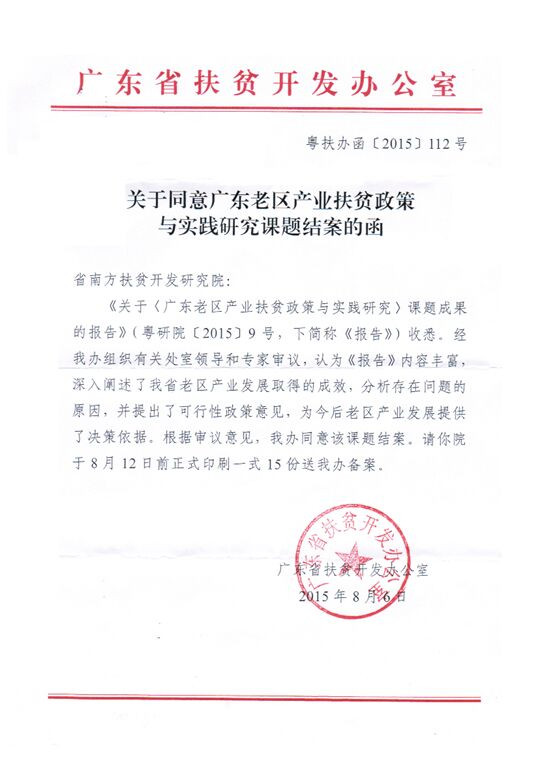 据悉,省南方扶贫开发研究院是专业从事扶贫开发研究的智库机构。本次“老区产业扶贫政策与实践研究”课题受省扶贫办委托,省南方扶贫开发研究院派出人员组成三个调研小组,分赴全省9个欠发达市52个县(市区)开展革命老区产业扶贫政策落实情况的实地调研活动,在此基础上,形成本次课题报告,并通过了专家多轮论证。