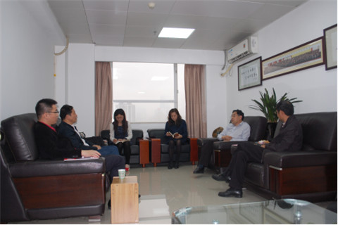 与华南理工大学校长助理、经济与贸易学院党委书记吴业春(右一)座谈