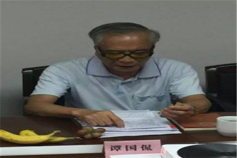 (左)广东省扶贫开发领导小组原副组长谭国侃在座谈会上发言
