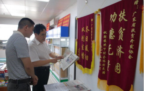 省政府特聘参事、省扶贫开发协会常务副理事长兼秘书长钟韶彬同志带领王岐立同志一行参观扶贫文化室