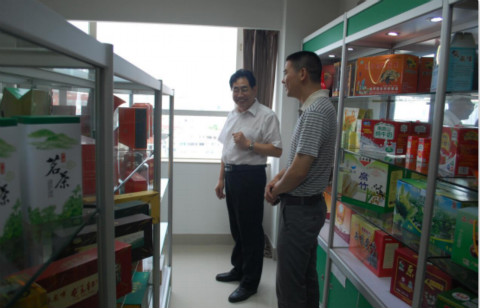 省政府特聘参事、省扶贫开发协会常务副理事长兼秘书长钟韶彬同志带领王岐立同志一行参观特色扶贫农产品展室