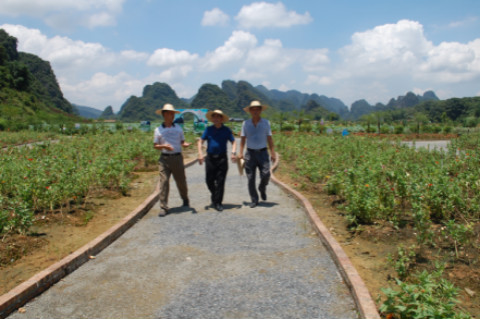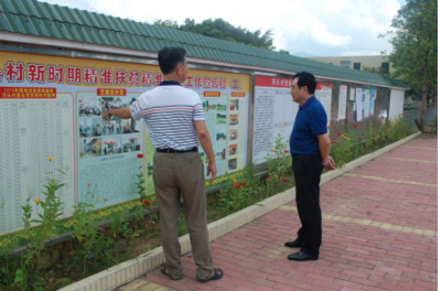 省政府特聘参事、省扶贫开发协会常务副理事长兼秘书长钟韶彬与省委办公厅副巡视员韦龙同志实地调研河头村帮扶项目