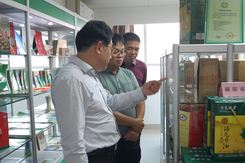 带领梅州市梅江区政府副区长刘伟球同志一行参观特色农产品展室
