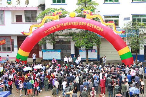 5月20日这一天,田阳县坡洪镇政府大院内,挤满了400多位前来应聘的村民,由碧桂园集团组织的第一场精准扶贫专场招聘会在这里举办。对于现场填写了求职申请表的210位村民来说,生活即将为他们打开一扇新的大门。