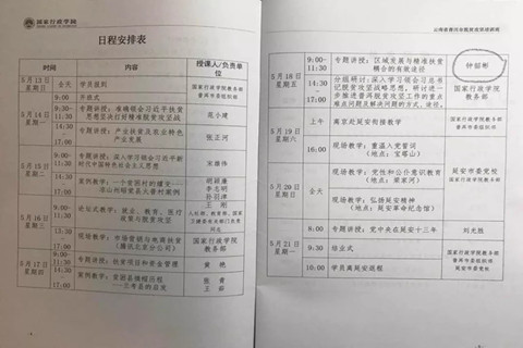 此次培训班以习近平中国特色社会主义思想为指导,深入学习贯彻党的十九大精神,全面落实党中央国务院脱贫攻坚工作部署,研究交流脱贫攻坚工作经验,提高学员精准脱贫攻坚的能力与水平。培训对象为普洱市市委市政府分管领导、普洱市扶贫开发领导小组成员单位负责人、各县区党委或政府分管负责人。培训分两阶段进行,第一阶段为5月14日至18日在学院举行专题授课、和案例教学、论坛式教学、现场教学、分组讨论等教学活动,第二阶段为5月19日至21日赴延安衔接教学,重温入党誓词,接受党性与公仆意识教育。其中在学院专题授课为此次培训的重头戏,共安排5场高质量的专题讲授,分两大板块进行,一是《习近平新时代中国特色社会主义思想》,由国家行政学院政治学部副教授宋雄伟担任主讲,二是脱贫攻坚业务内容,设定四大主题,一是《准确领会习近平扶贫思想坚决打好精准脱贫攻坚战》、二是《扶贫项目与资金管理》、三是《区域协调发展与精准扶贫》、四是《产业扶贫和农业特色产业发展》,分别由国务院扶贫开发领导小组专家咨询委员会主任范小建、国务院扶贫办规划财务司副司长黄艳、广东省扶贫开发协会常务副理事长钟韶彬和中国农业大学教授张正河担纲主讲,讲授依次展开层层递进,受到学员普遍欢迎。