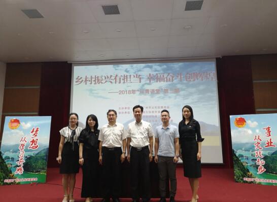 《广东扶贫》全媒体中心讯(通讯员/李杰报道)7月18日上午,由共青团广州市从化区委员会主办,广东省扶贫开发协会、广东省南方扶贫开发研究院、欣坤生态农业有限公司、欣坤教育咨询有限公司团支部协办的2018年“从青讲堂”第三期活动在从化区图书馆报告厅举行,省政府特聘参事、广东省扶贫开发协会常务副理事长兼秘书长钟韶彬作为主讲嘉宾为团区委常委、机关全体干部、各镇团委、街道团工委,各直属单位团组织书记和副书记、各镇街返乡创业青年、村居团支部书记、广州市青联委员(从化片区)、返乡下乡创业青年代表、青年种养大户代表、驻从单位团组织、乡村振兴志愿者代表等共计100多人做了“新时代乡村振兴战略”的专题报告。