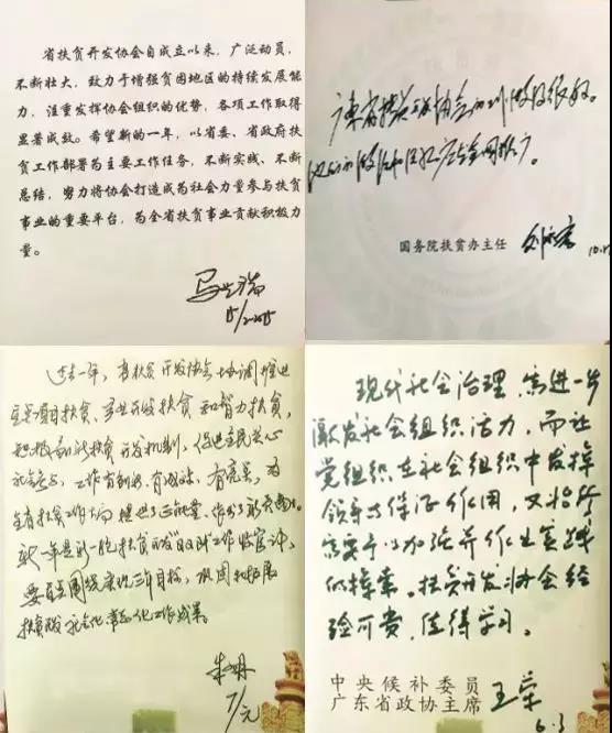 马兴瑞、刘永富、朱小丹、王荣等领导对广东省扶贫开发协会工作的批示