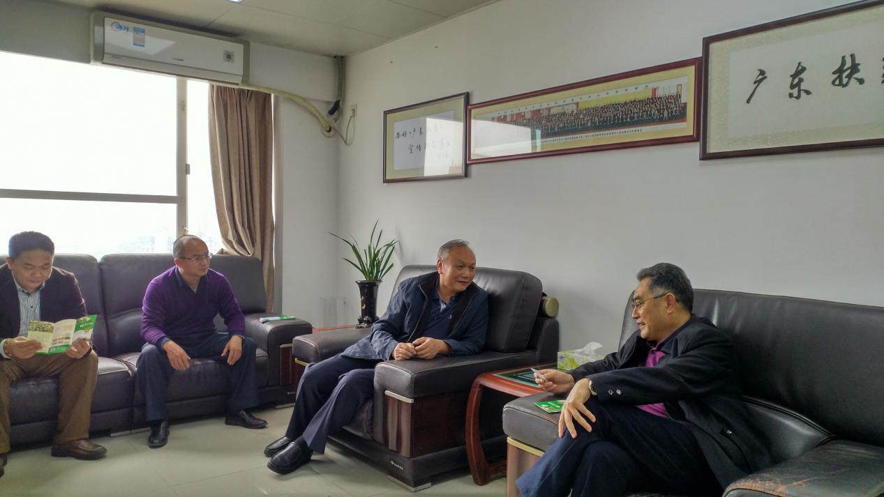 广东扶贫新媒体中心讯(通讯员/黄燕珠报道)12月19日上午,东源县大地农林发展有限公司廖忠波董事长率队到访广东省扶贫开发协会,报告公司近两年来实施油茶产业开发扶贫情况,听取协会指导意见。广东省人民政府参事室特聘参事、广东省扶贫开发协会常务副理事长兼秘书长钟韶彬、东莞亿金金属制品有限公司、河源亿金金属制品有限公司董事长赖宇清一同接待来访并与之座谈。