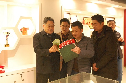 南方农村杂志社陈勇副社长、熊飞主任和英德积庆里茶叶有限公司邓慈寒总经理、英德市永和农业发展有限公司蔡军总经理参观协会党建活动室、扶贫微展室(新闻图片摄影/李展鸿)
