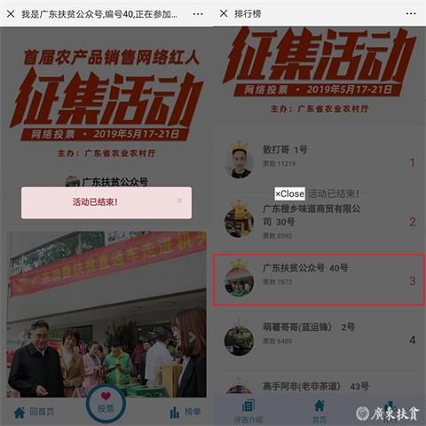 广东扶贫全媒体中心讯(通讯员/蔺桦报道)首届农产品销售网络红人征集活动在本月21号晚上10点落下帷幕,广东扶贫公众号以位居第三名完美收官。