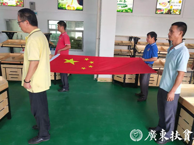 广东省扶贫开发协会副秘书长赖宇清主持了河源扶贫农产品展销厅的升旗仪式。