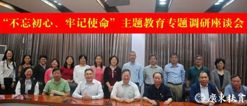 广东扶贫全媒体中心讯(通讯员/文美玲、林思妍、程姿媛报道)11月12日下午,广东省第二批“不忘初心、牢记使命”主题教育专题调研座谈会在省农业农村厅召开。来自社会组织领域的代表集中学习习近平总书记关于主题教育的重要论述、十九届四中全会精神和中央、省有关主题教育文件,汇报交流学习体会和开展主题教育情况,省社会组织管理局黎建波副局长亲临指导并作动员部署,号召结合学习贯彻十九届四中全会精神,高质量完成第二批主题教育任务。省政府参事室特约研究员、省扶贫开发协会常务副理事长兼秘书长钟韶彬同志主持座谈会。
