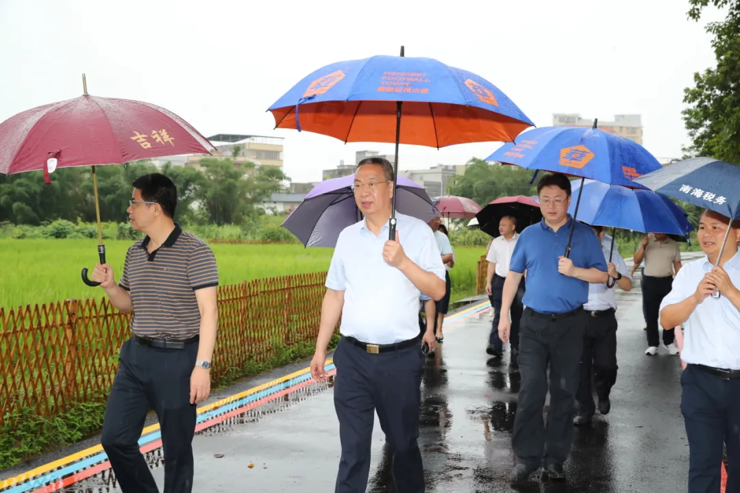 在五华县,调研组详细了解横陂镇横陂村(小都河段)沿河道路升级改造工程项目、崇文村晟家园示范农场、第一小学教学楼及环境绿化美化建设等情况,并参加横陂镇第一小学新建的广晟教学楼交付和晟家园示范农场产品销售签约活动。随后,调研组与五华县开展对口帮扶工作座谈。双方就县域经济发展、纵向帮扶工作成果、文旅体项目谋划、产业发展难题及下一步工作计划等交换了意见。