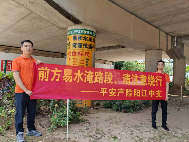 在江门:针对14处历史易涝的重点水淹黑点,组织人员张贴并悬挂醒目的警示标志和横幅,及时提醒过往车辆注意避险。同时,理赔人员利用大灾互认APP进行定点打卡,确保风险排查到位、预警信息畅通。