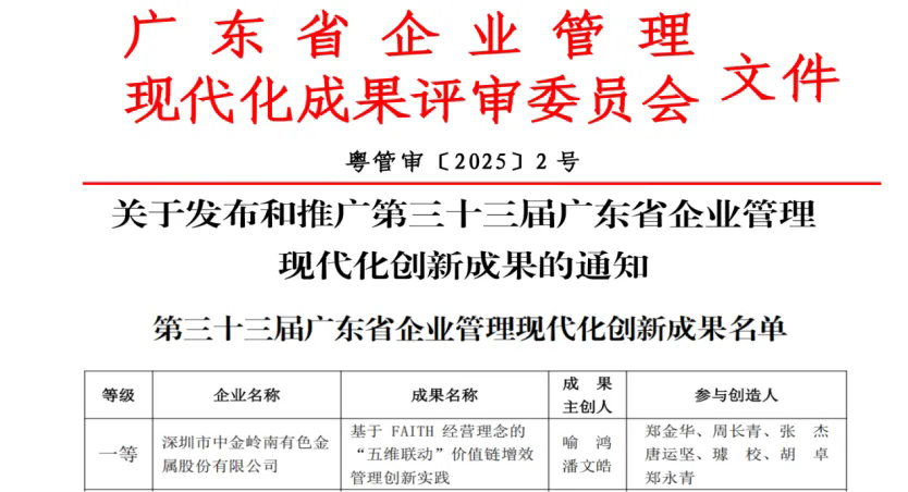 近年来,中金岭南深入践行FAITH经营理念,以“聚焦主业、行胜于言、创新制胜、技术自强、以人为本”五大行为导向,构建了以“增量增效、提质增效、创新增效、降本增效、协同增效”为核心的“五维联动”价值链增效管理体系,系统性推动产业链各环节优化提升,在增储上产方面,实施“内生增储+外延并购”双轮驱动,提升资源保障能力;在科技创新方面,依托技术创新攻克“卡脖子”难题,推动新材料成果转化;在成本管控方面,通过刚性预算、供应链金融、量化库存等手段实现深度降本,并深化矿山、冶炼、新材料、供应链之间的跨板块协同,形成了覆盖战略、运营、创新、成本与协同的全链条管理新范式,推动公司高质量发展。2024年,公司实现营业收入598.12亿元,利润总额16.03亿元,归母净利润同比增长57.25%;全年实现降本增效超2亿元。