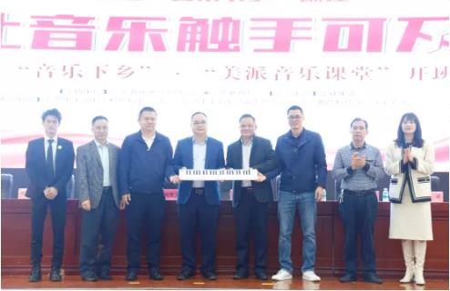 据了解,本次“音乐下乡”·“美派音乐课堂”开班仪式是继1月15日举办的“广东省扶贫开发协会音乐下乡工作委员会成立暨音乐下乡公益活动启动仪式”后开展的系列活动的延续,活动上,广东省扶贫开发协会常务副理事长单位、龙健集团向廉江市第一中学、廉江市第三中学捐建“美派音乐课堂”总额30万元。此前,音乐助学之旅首站走近贵州省毕节市威宁县,“美派音乐课堂”受到威宁县第十一中学、威宁县第十小学、威宁县草海镇保家中学等多所学校的欢迎。