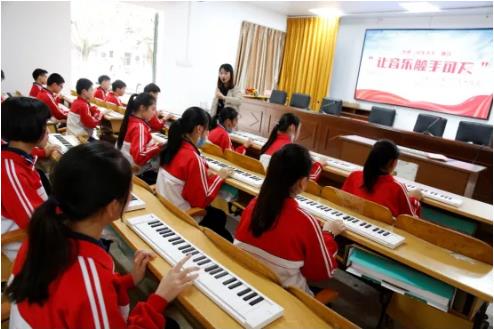 刘建光局长充分肯定龙健集团“音乐下乡”公益活动给廉江市音乐教育带来的“新动力”、“新示范”,并表示未来将“用好美派音乐课堂,做成榜样,形成示范,推动“美派音乐课堂”在廉江遍地开花;在提高教育水平的同时,让学生在音乐中健康成长,实现梦想,为祖国建设、廉江发展做贡献。赖鑫校长指出,“音乐是文化的底色”,音乐在增强文化自信中具有独特作用,全校师生要积极参与“美派音乐课堂”的学习,从而提升学生的自信。杨昉副校长对“音乐下乡”项目十分赞赏,并表示将大力支持项目的开展,鼓励同学们积极培养音乐兴趣爱好,丰富精神文化生活。