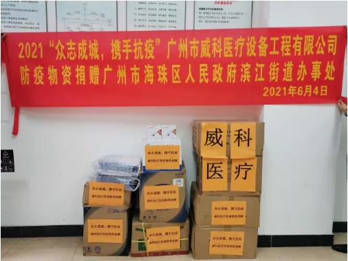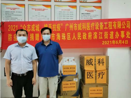近日,广东省扶贫开发协会副理事长单位、 广州市威科医疗设备工程有限公司向广州市海珠区人民政府滨江街道办事处抗疫物资一批,为疫情防控贡献企业力量。