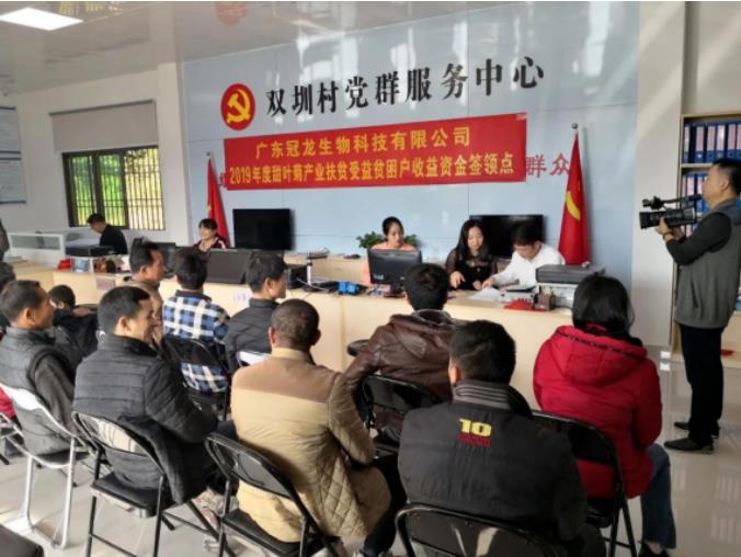 冠龙生物的甜菊糖还是产业帮扶的重点项目。广东省扶贫开发协会认定其生产基地为“广东产业振兴示范基地”。长期与海丰县甜叶菊种植专业合作社合作,以“公司+基地+农户”的模式运作。采用合同订单、干叶保护价回购形式收购干叶,种植面积达20000亩,年产甜叶菊干叶达到7200吨,产值超亿元。董事长李冠枚致力于科技农业发展,科学的种植方法让帮扶农户实现稳步增收。他们在平东镇建立育苗、育种种植示范区,向帮扶农户提供种苗、生产材料及免费技术服务,带动1000户农户增加经济收入。公司设立帮扶基金200万元,给帮扶农户每户 1500元补助。