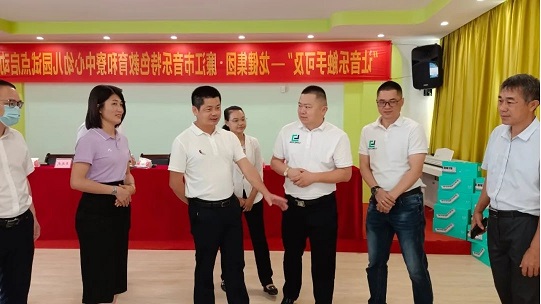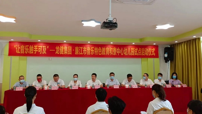 作为2021年1月,由广东省扶贫开发协会主办,龙健集团、中共廉江市委宣传部支持举办,东莞市美派电子科技有限公司、广州市笛美音响设备有限公司、厅厅教育科技(广东)有限公司、广东龙健电子科技有限公司等龙健集团旗下子公司协办的“广东省扶贫开发协会音乐下乡工作委员会成立暨音乐下乡公益活动”的延续,“让音乐触手可及”——龙健集团·廉江市音乐特色教育和寮中心幼儿园试点启动仪式5月30日在和寮中心幼儿园隆重举行。廉江市副市长卓志强,市教育局党组书记、局长吴廷武,和寮镇委书记谭火兰,镇长陈敏,龙健集团副总裁周兴光,龙健集团音乐下乡公益工作组秘书、广州市笛美音响设备有限公司总经理朱佰乐,广州德勤龙健电子有限公司大项目总监张锡明,以及市教育局、和寮镇中心小学、中心幼儿园相关领导,中心幼老师代表等出席了启动仪式。