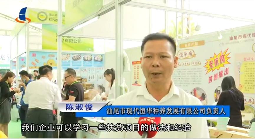 广东省扶贫开发协会理事单位、汕尾市现代恒华种养发展有限公司负责人陈淑俊现场接受记者采访。陈淑俊表示,现代恒华种养发展有限公司通过立足于资源的优势,培育传统的特色产业,积极引导贫困群众参加到生产中,目前带动了316户贫困户和群众加入了合作社。四年来,公司、合作社分红,以110万元的分红,分到各个贫困户的手中。他表示:“我们企业可以学习一些扶贫项目的做法和经验,同时我们可以通过这个平台,来提高我们产品的知名度。”