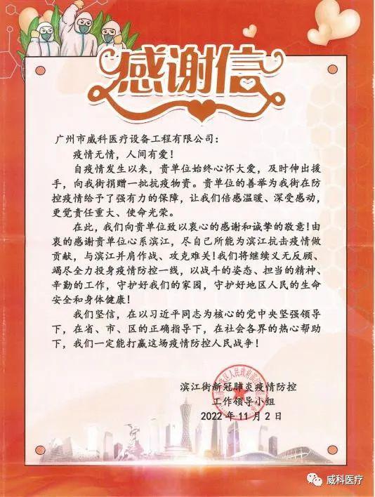 威科医疗始终秉承“经营健康产业,健康经营企业”的宗旨,致力于为广大民众带来健康的生活,为民族的健康事业尽一份绵力。自疫情发生以来,多次为街道、各级单位等捐赠物资,尽企业社会责任。接下来将继续按照市、区防控政策,在做好企业自身防疫工作的同时,继续尽自己所能为防疫工作作出贡献。