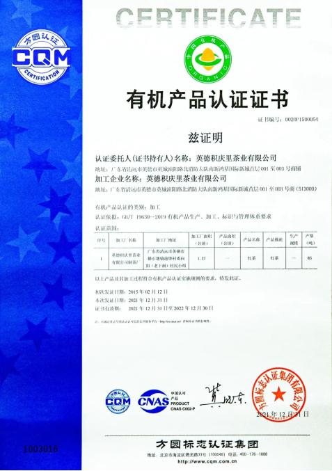 积庆里是英德红茶中的优秀品牌,“粤字号农业品牌”,“2021年度茶业畅销品牌”,其出产的英红九号,品质优异,通过有机产品认证、生态原产地保护认证、地理标志保护产品认证,获评“广东十大茗茶”。