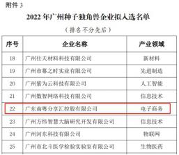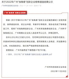 近日,广州市科技创新企业协会发布2022年广州“独角兽”创新企业榜单遴选结果,经企业申报、专家评价等程序,广东南粤分享汇控股有限公司凭借高成长性和卓越的技术创新能力,入选“广州种子独角兽企业”榜单。
