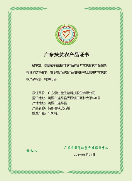“恃斛春”铁皮石斛获准“广东扶贫农产品”认证