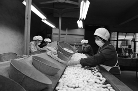 车间工人在挑选蚕茧