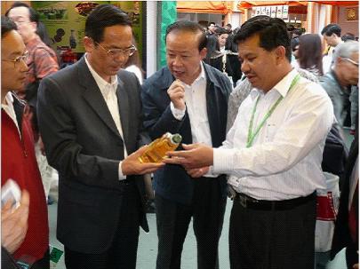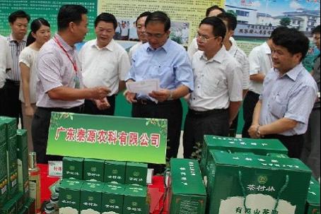 广东省副省长李容根(时任)、林业厅厅长张育文在梅州市市长周泽君等带领下了解泰源公司产品特性