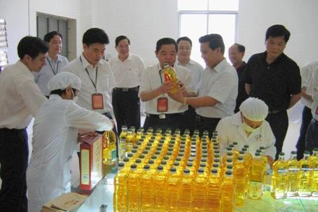 公司董事长张耿明向考察领导介绍茶油产品特性