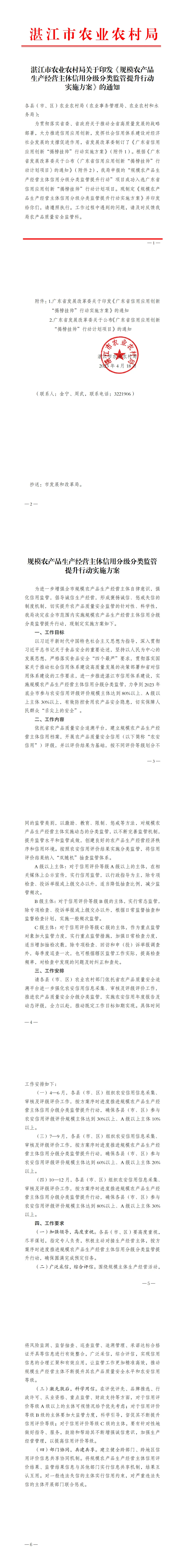 湛江市印发规模农产品生产经营主体信用分级分类监管提升行动实施方案