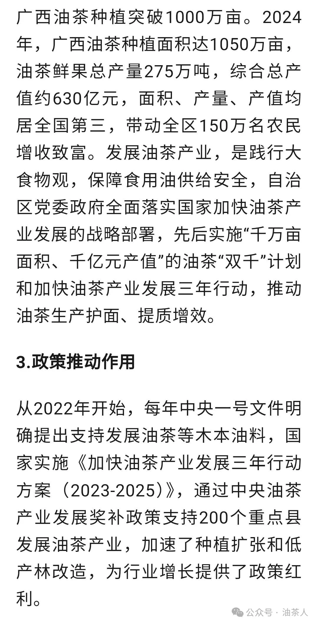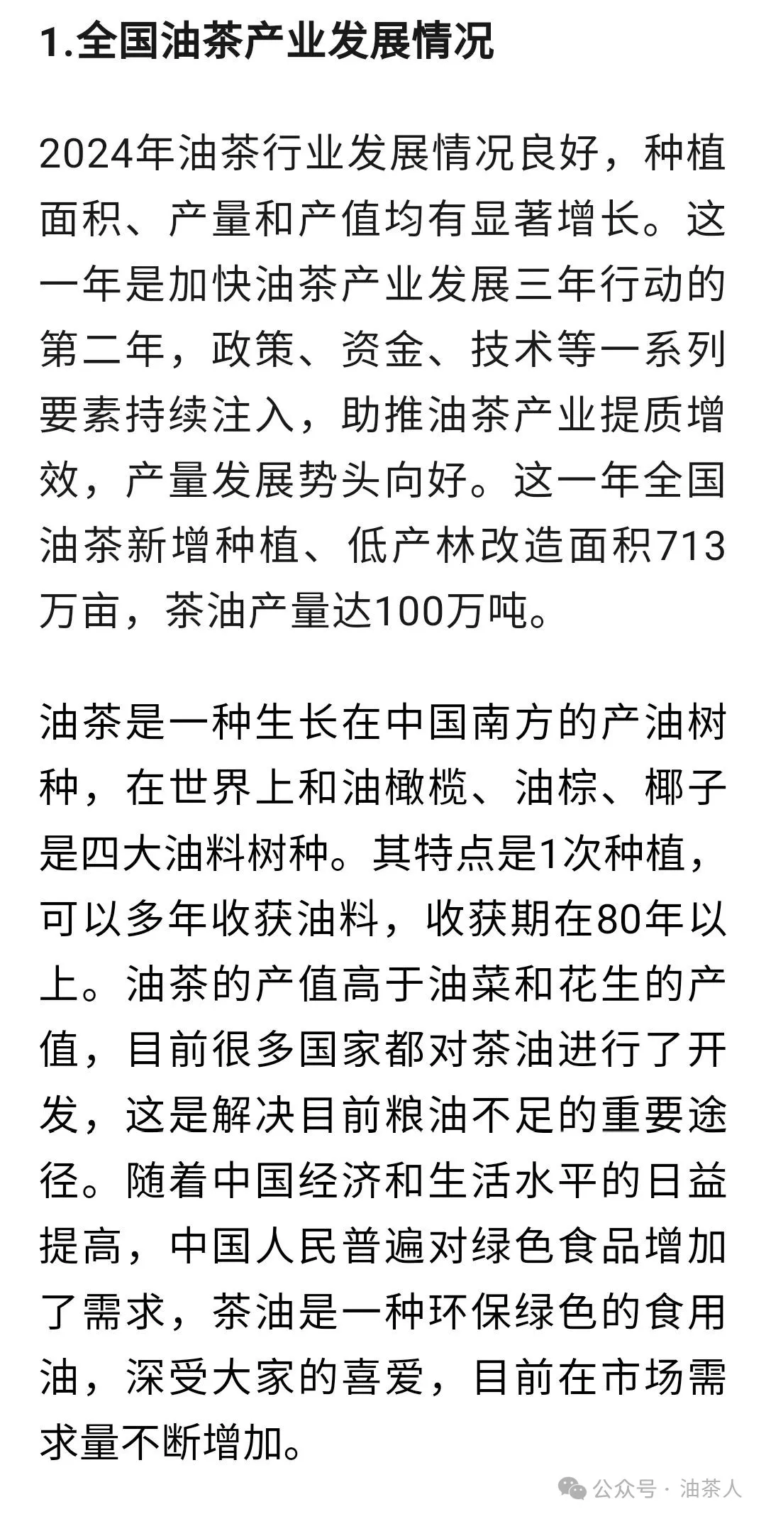 油茶产业已成为中国林业经济中增长最快、潜力最大的领域之一,未来随着科技进步、加工技术提升和市场需求扩大,其产值有望持续攀升。