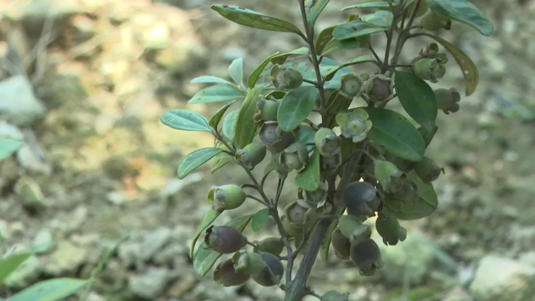 炎炎夏日,竹塘村桃金娘种植基地内,大片桃金娘长势喜人,饱满的紫红色果子挂满枝头,呈现出丰收美景。