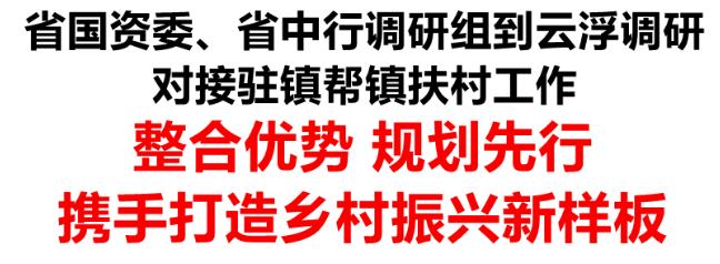 6月25日,省国资委党委书记、副主任范中杰,中国银行广东省分行党委书记、行长李瑞强率联合调研组,就学习贯彻习近平总书记重要讲话重要指示精神,贯彻落实党中央和省委、省政府决策部署,以及省有关驻镇帮镇扶村工作要求,到云浮市罗定罗平镇开展对接调研。