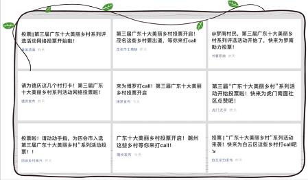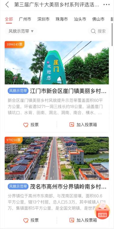 该活动不仅调动广大网友的积极性,还受到各地级市干部群众的热烈响应。据不完全统计,全省多家市、县“政府发布”平台一起“联播”推广第三届广东十大美丽乡村系列活动信息,几百家县级融媒、广播电台、官方微博等报道了投票活动,为参评单位加油鼓劲。