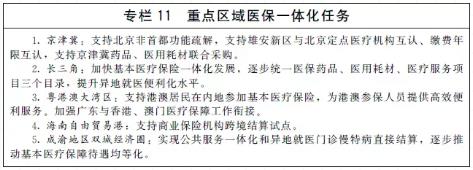 《规划》提出以下重点任务,一是健全多层次医疗保障制度体系,提升基本医疗保险参保质量,优化完善基本医保待遇保障和筹资机制,鼓励商业健康保险和医疗互助发展,稳步建立长期护理保险制度。二是优化医疗保障协同治理体系,完善医疗保障支付机制和医药价格形成机制,加快健全基金监管体制机制,协同建设高效的医药服务供给体系。三是构筑坚实的医疗保障服务支撑体系,健全医疗保障公共服务体系,强化法治支撑,推动安全发展,加快医保信息化建设,健全标准化体系。