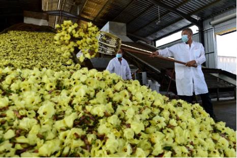 ▲10月1日,村民在安徽省阜阳市颍上县五十铺乡黄蜀葵花烘干车间把黄蜀葵花送进烘干机。新华社记者 黄博涵 摄