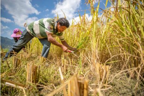 ▲10月3日,村民在重庆市酉阳土家族苗族自治县花田乡何家岩村收割水稻。新华社记者 黄伟 摄