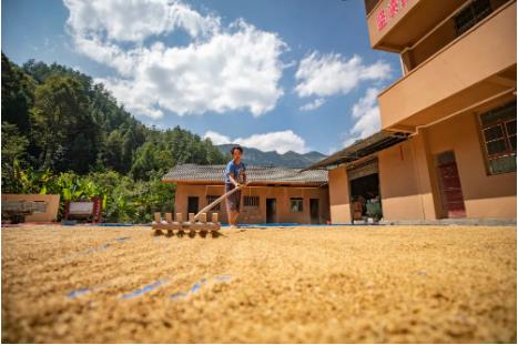 ▲10月3日,在重庆市酉阳土家族苗族自治县花田乡何家岩村,村民在晾晒水稻。新华社记者 黄伟 摄